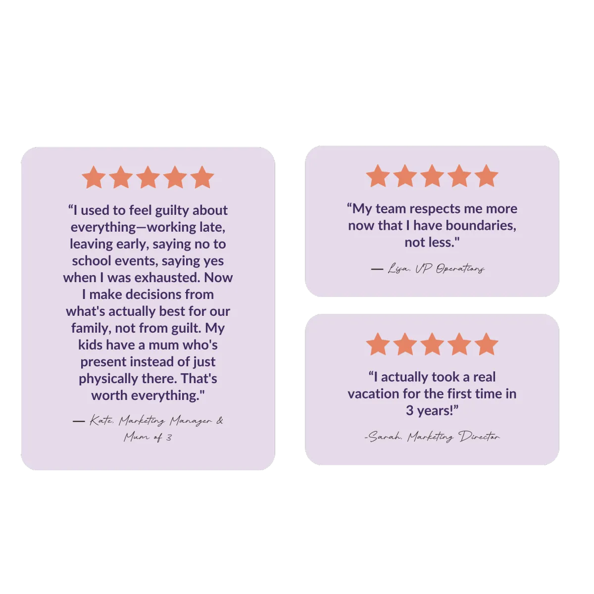 The women who work with me don't just get their lives back, they get themselves back. The version that dreams big, sets boundaries without guilt, and enjoys the incredible life they've built.